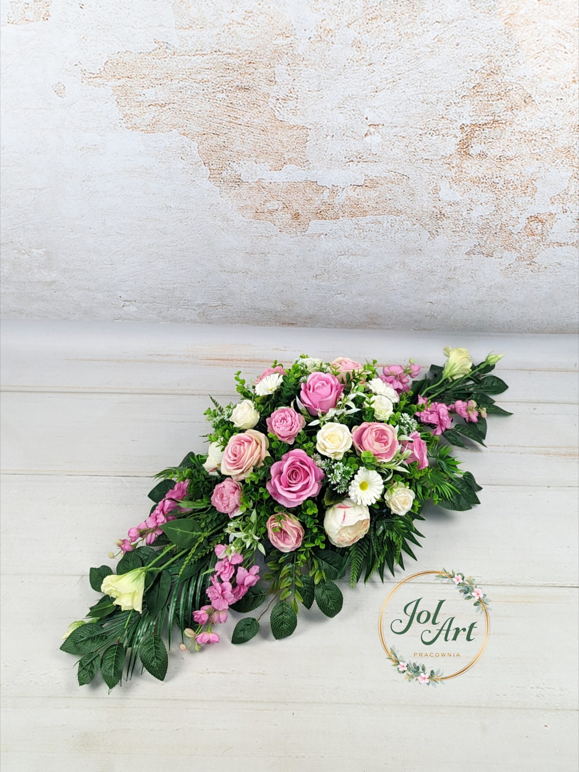 • Z uwagi na to, że każda kompozycja wykonywana jest ręcznie jej wielkość i ułożenie poszczególnych elementów mogą się minimalnie różnić, gwarantuję jednak zachowanie estetyki wykonania, tę samą kolorystykę oraz ilość wykorzystanych kwiatów i dodatków,